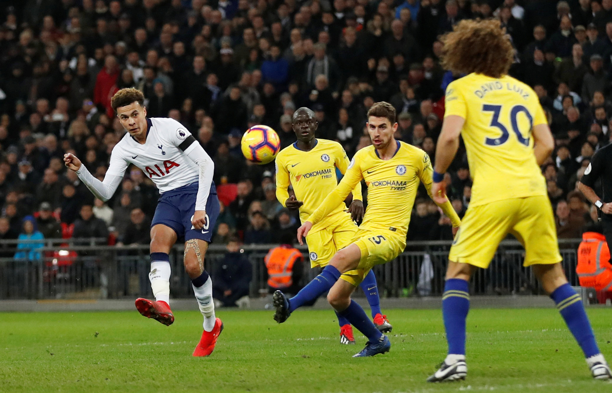Soccer Football – Premier League – Tottenham Hotspur v Chelsea – Wembley Stadium, London, Britain – November 24, 2018 Tottenham’s Dele Alli shoots at goal Action Images via Reuters/Matthew Childs EDITORIAL USE ONLY. No use with unauthorized audio, video, data, fixture lists, club/league logos or “live” services. Online in-match use limited to 75 images, no video emulation. No use in betting, games or single club/league/player publications. Please contact your account representative for further details.