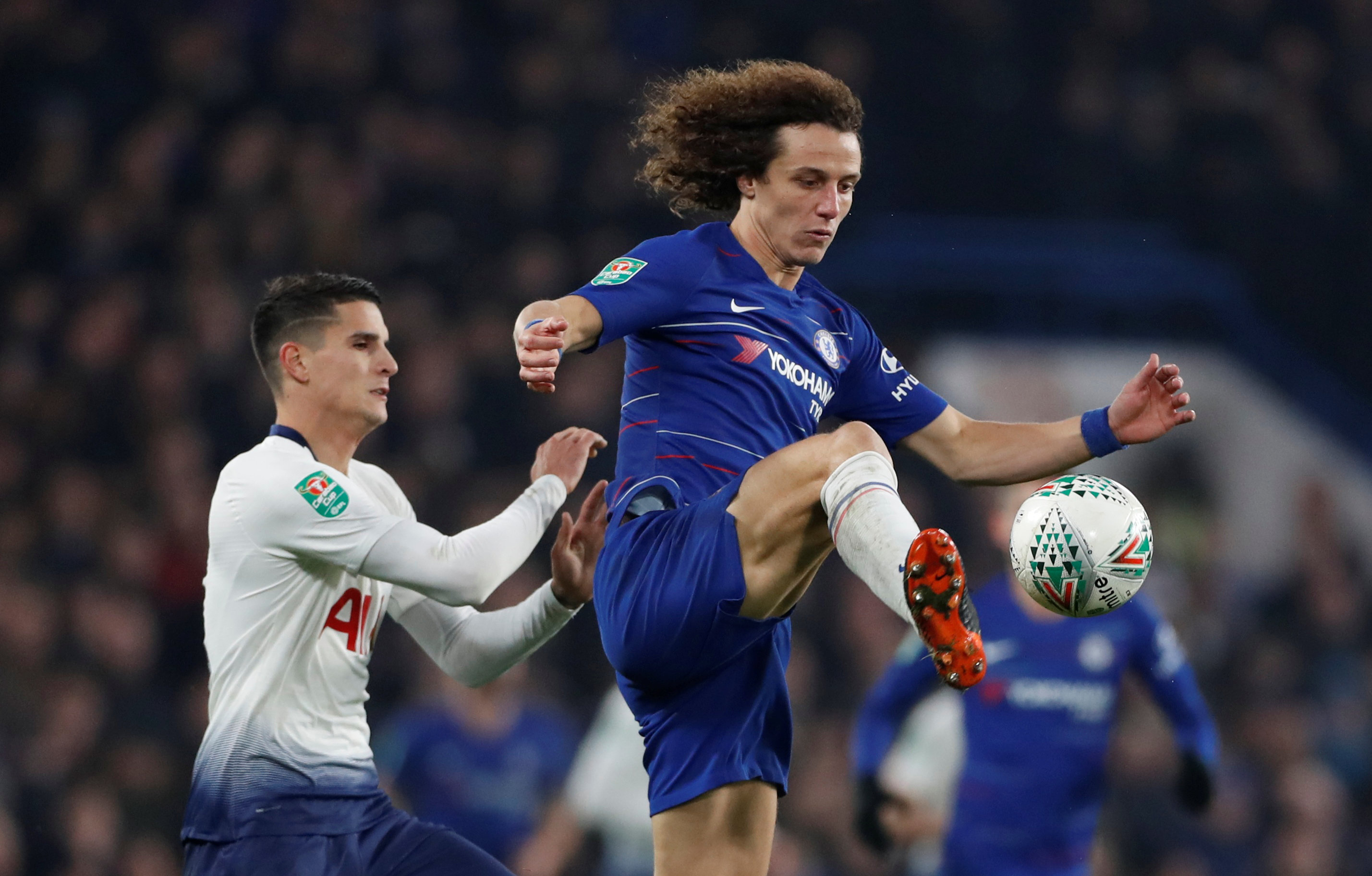 Soccer Football – Carabao Cup – Semi-Final Second Leg – Chelsea v Tottenham Hotspur – Stamford Bridge, London, Britain – January 24, 2019 Chelsea’s David Luiz in action with Tottenham’s Erik Lamela Action Images via Reuters/Matthew Childs EDITORIAL USE ONLY. No use with unauthorized audio, video, data, fixture lists, club/league logos or “live” services. Online in-match use limited to 75 images, no video emulation. No use in betting, games or single club/league/player publications. Please contact your account representative for further details.