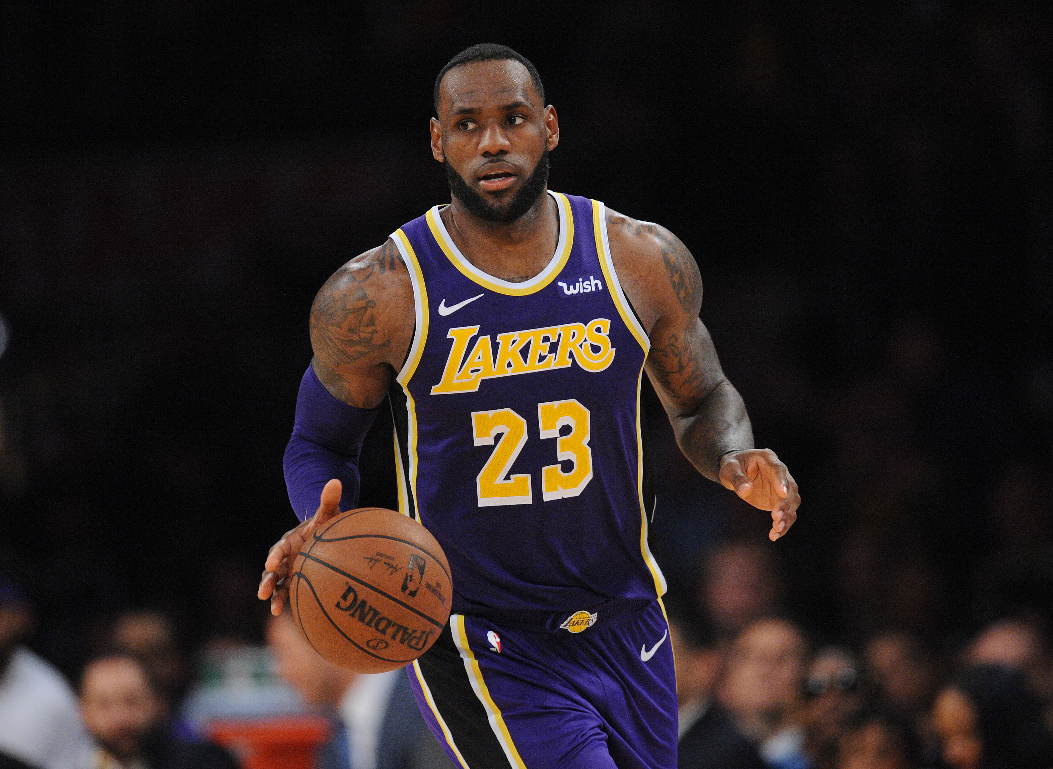 NBA: Denver Nuggets at Los Angeles Lakers March 6, 2019; Los Angeles, CA, USA; Los Angeles Lakers forward LeBron James (23) moves the ball against the Denver Nuggets during the second half at Staples Center. Mandatory Credit: Gary A. Vasquez-USA TODAY Sports