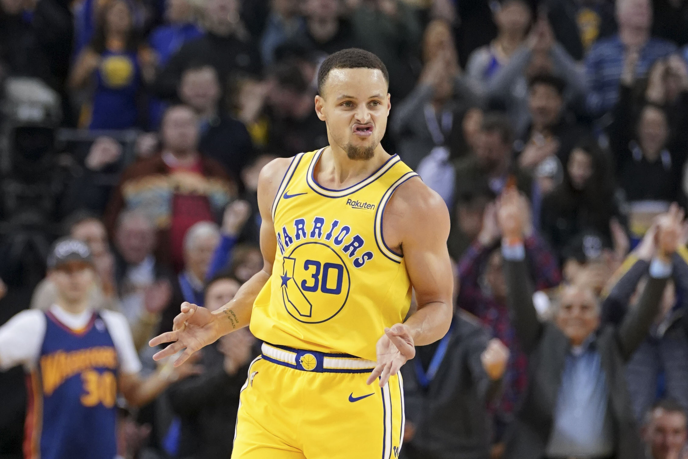 Next Image NBA: Sacramento Kings at Golden State Warriors February 21, 2019; Oakland, CA, USA; Golden State Warriors guard Stephen Curry (30) celebrates after making a three-point basket against the Sacramento Kings during the fourth quarter at Oracle Arena. Mandatory Credit: Kyle Terada-USA TODAY Sports