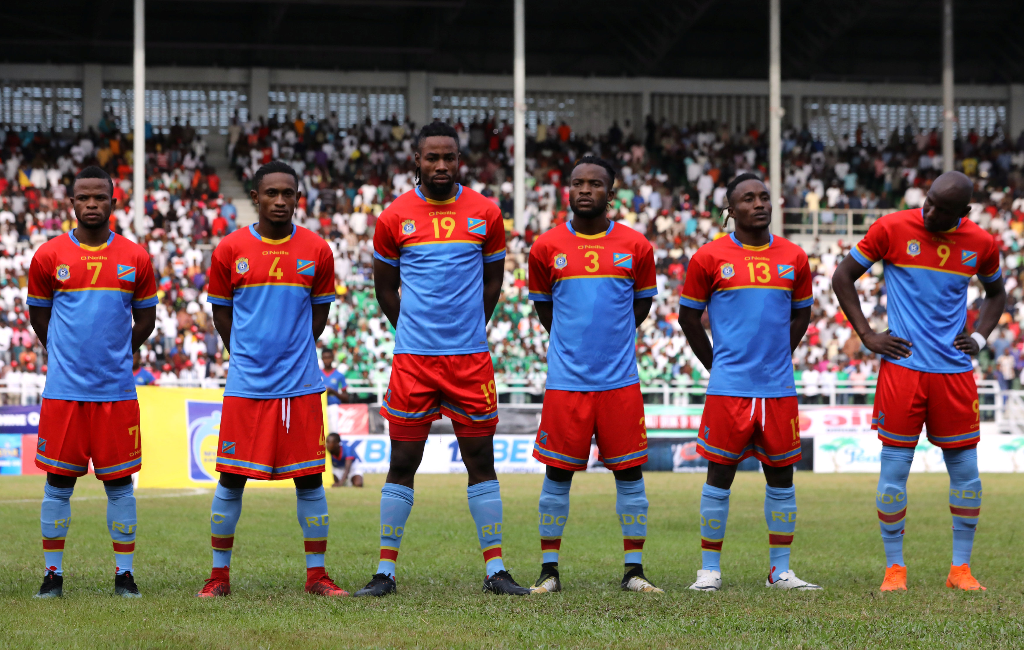 International Friendly – Nigeria vs DR Congo Soccer Football – International Friendly – Nigeria vs DR Congo – Adokiye Amiesimaka Stadium, Port Harcourt, Nigeria – May 28, 2018 DR Congo players line up before the match REUTERS/Afolabi Sotunde