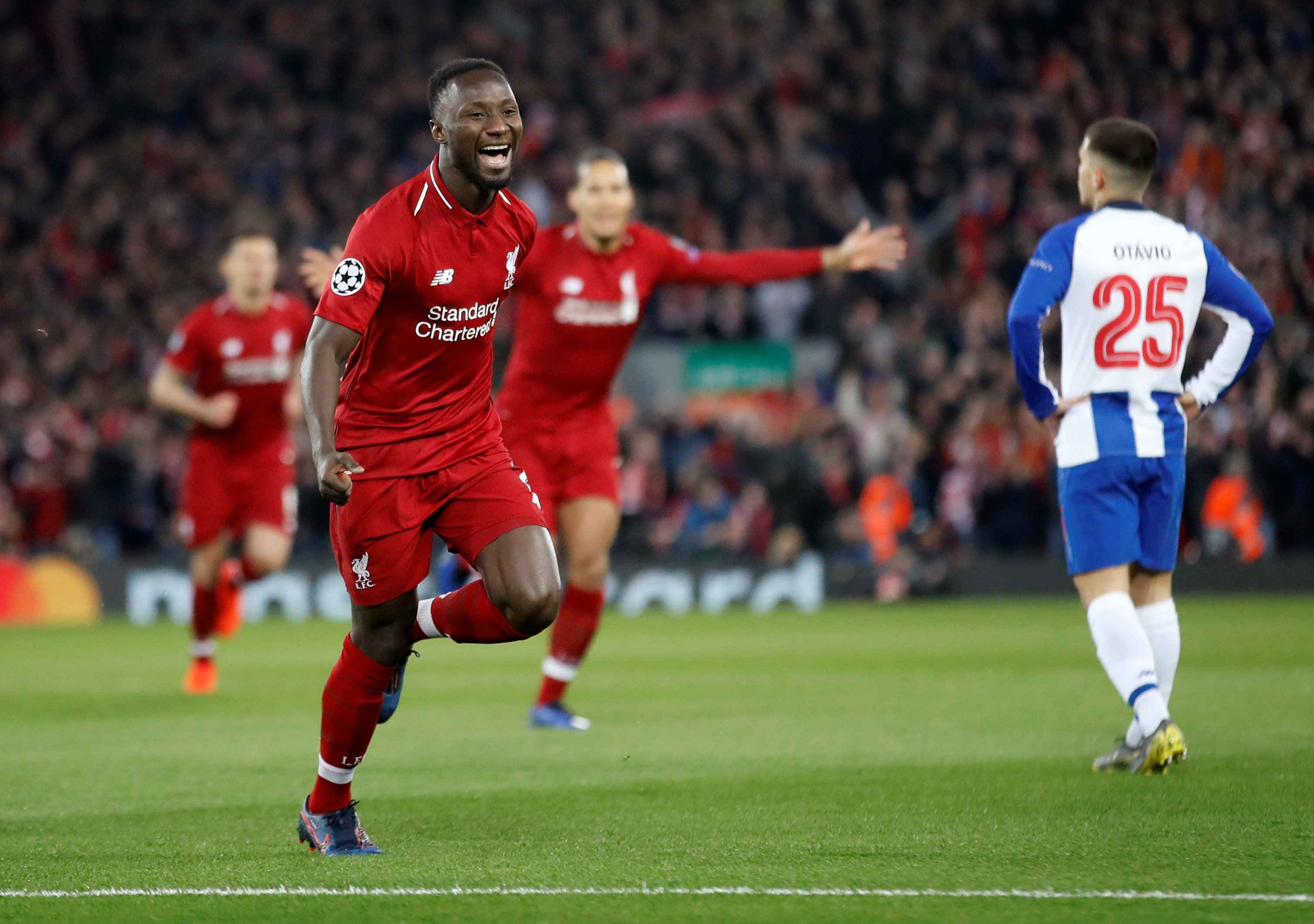 Soccer Football – Champions League Quarter Final First Leg – Liverpool v FC Porto – Anfield, Liverpool, Britain – April 9, 2019 Liverpool’s Naby Keita celebrates scoring their first goal Action Images via Reuters/Carl Recine